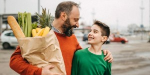 Home > SNAP Cuts Mitigation Hub: Responding to H.R. 1 > H.R. 1 Provision: Increases in Administrative Costs (Sec. 10106) > Father and Son with Grocery Bags