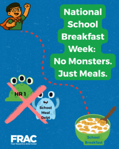 The fight to protect critical nutrition programs is more urgent than ever. Historic SNAP cuts will harm millions of families and ripple across other programs, including school meals. Your support of FRAC has never been more crucial.