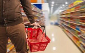 Man With Grocery Basket Wide